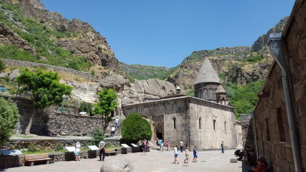- ⛪ Monastère troglodyte de Geghard, classé à l’UNESCO. Il se compose de plusieurs églises, tombes et chambres de moines. L’église principale fut construite au 13e siècle, mais certains édifices remonteraient au 4e, voire au 3e siècle.