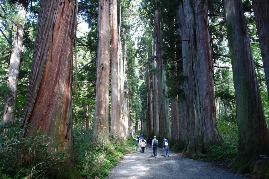 Il y a aussi la possibilité de se rapprocher du sanctuaire le plus connu, au bout du sentier, en se garant à seulement 2 kilomètres de celui-ci. De là, comptez environ une heure pour parcourir le chemin aller-retour. Cet itinéraire raccourci vous permettra de passer par l’incroyable allée de cèdres de Togakushi. C’est l’un des sites les plus emblématiques de Togakushi, un sentier bordé d’imposants cèdres japonais centenaires. Cette impressionnante avenue s’étend sur environ 500 mètres et mène les visiteurs au sanctuaire sacré d’Okusha.