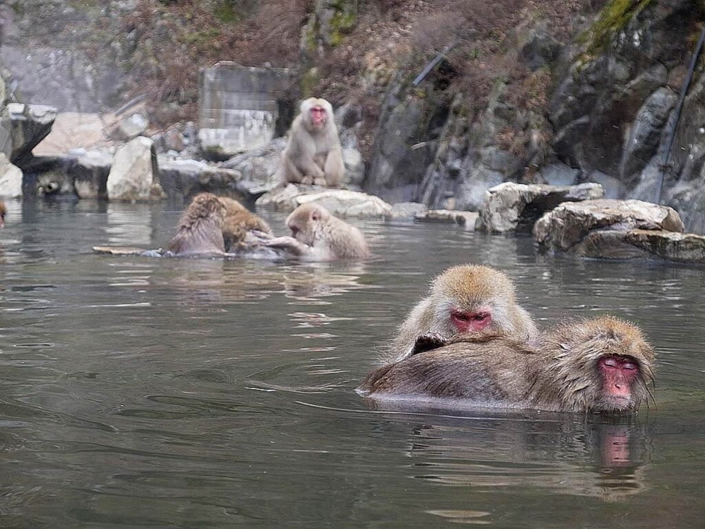 Les célèbres singes des neiges se trouvent au Jigokudani Monkey Park, près de Nagano. Ils se baignent dans les sources chaudes, surtout en hiver.